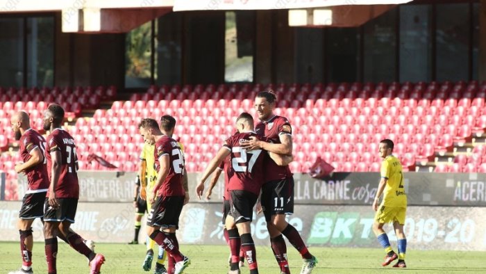 I granata, nel deserto dell’Arechi e sotto lo sguardo dei co-patron Marco Mezzaroma e Claudio Lotito, sono stati raggiunti nella ripresa. A condizionare la gara il gran caldo che, ancor di più dopo il lungo stop, si è fatto sentire. In una delle poche occasioni la Salernitana è passata in vantaggio con Djuric. Poi nella ripresa Masucci ha pareggiato i conti. Un palo ha negato la gioia del 2-1 a Kiyine sugli sviluppi d’un calcio piazzato. I toscani hanno avuto la chance per chiudere i conti con Vido ma il suo colpo di testa è terminato a lato d’un soffio.