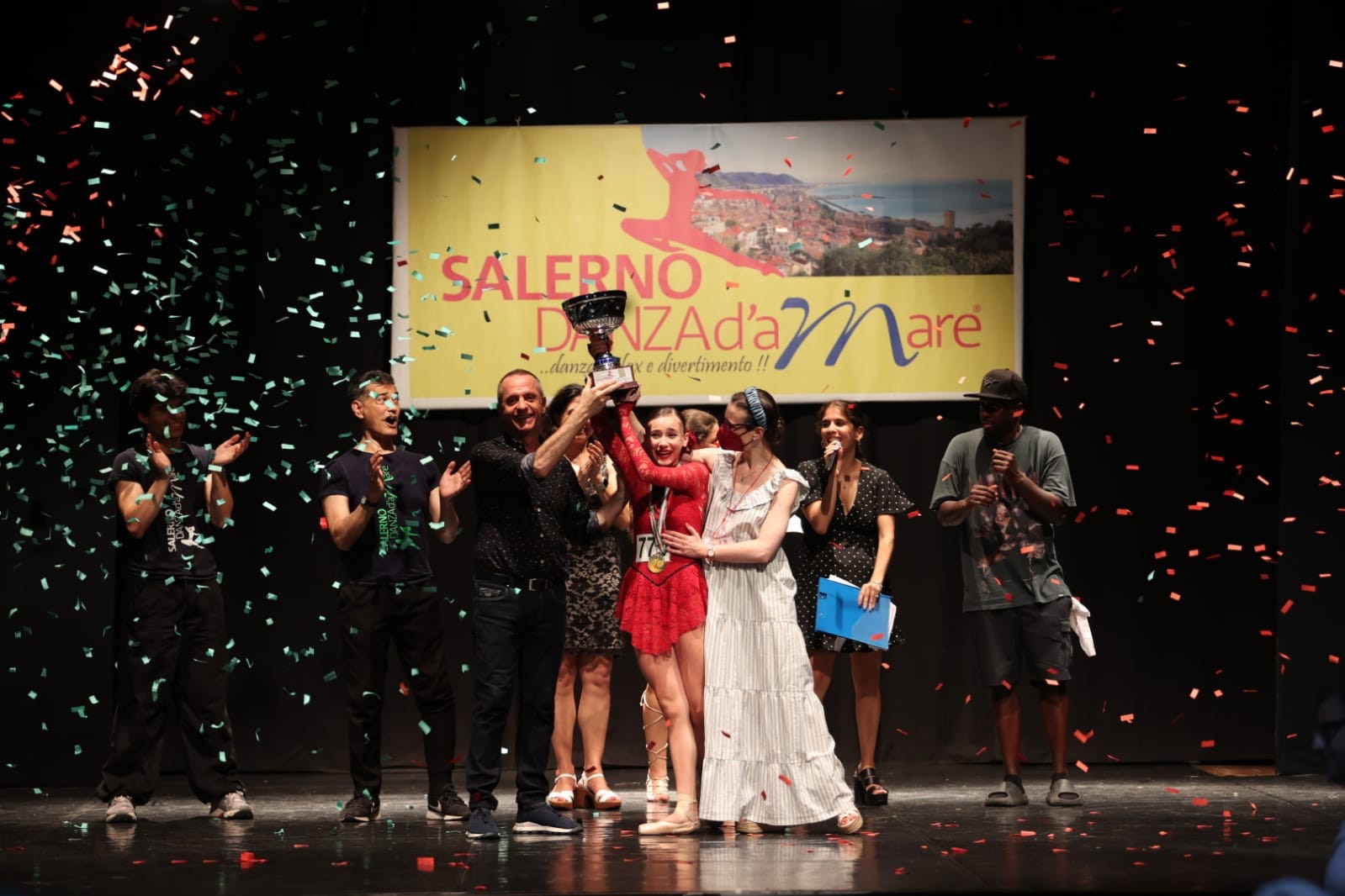 Le intense giornate di danza si sono concluse sul palco del Teatro dell’Auditorium del Centro Sociale di Salerno con il Concorso Internazionale di danza alla presenza della giuria composta dai Maestri: André De La Roche, Kristina Grigorova, Oliviero Bifulco, Little Phil, Alessia landi che hanno assegnato premi non in denaro del valore di oltre 50.000 euro in borse di studio totali e parziali. I primi tre classificati di ogni sezione e categoria, sono stati premiati con Medaglia e Borse di Studio, dal quarto classificato in poi sono stati premiati con Borse di Studio. Nelle diverse sezioni e categorie, saranno assegnate le medaglie “TALENTO” e i premi speciali “INNOVAZIONE”, “ENERGIA”, “INTERPRETAZIONE”, “MUSICALITÀ”, “PRESENZA SCENICA”. Infine, i coreografi che hanno firmato la coreografia avente il voto di categoria più alto, hanno ricevuto la targa “TOP CHOREOGRAPHER”. Le scuole iscritte nelle diverse categorie hanno poi ricevevuto il premio “SHOW ON” e l’Attestato di Partecipazione firmato dai maestri in giuria. Ad aggiudicarsi il trofeo finale “SALERNO DANZA d’aMare” è stata l’esibizione “Carmen” della scuola Accademie di Ballet Classique di Avellino con l’insegnante Zelia Guarini.