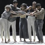 Spazio bianco, ampio, silenzioso, definito dalle azioni dei performer intenti a percepire sé stessi in relazione all’altro. Un continuo cercarsi e sorreggersi fatto d’intrecci vorticosi e dinamiche crescenti, un flusso di danza elegante e potente, ma allo stesso tempo dolce e raffinato, dà vita al suono.