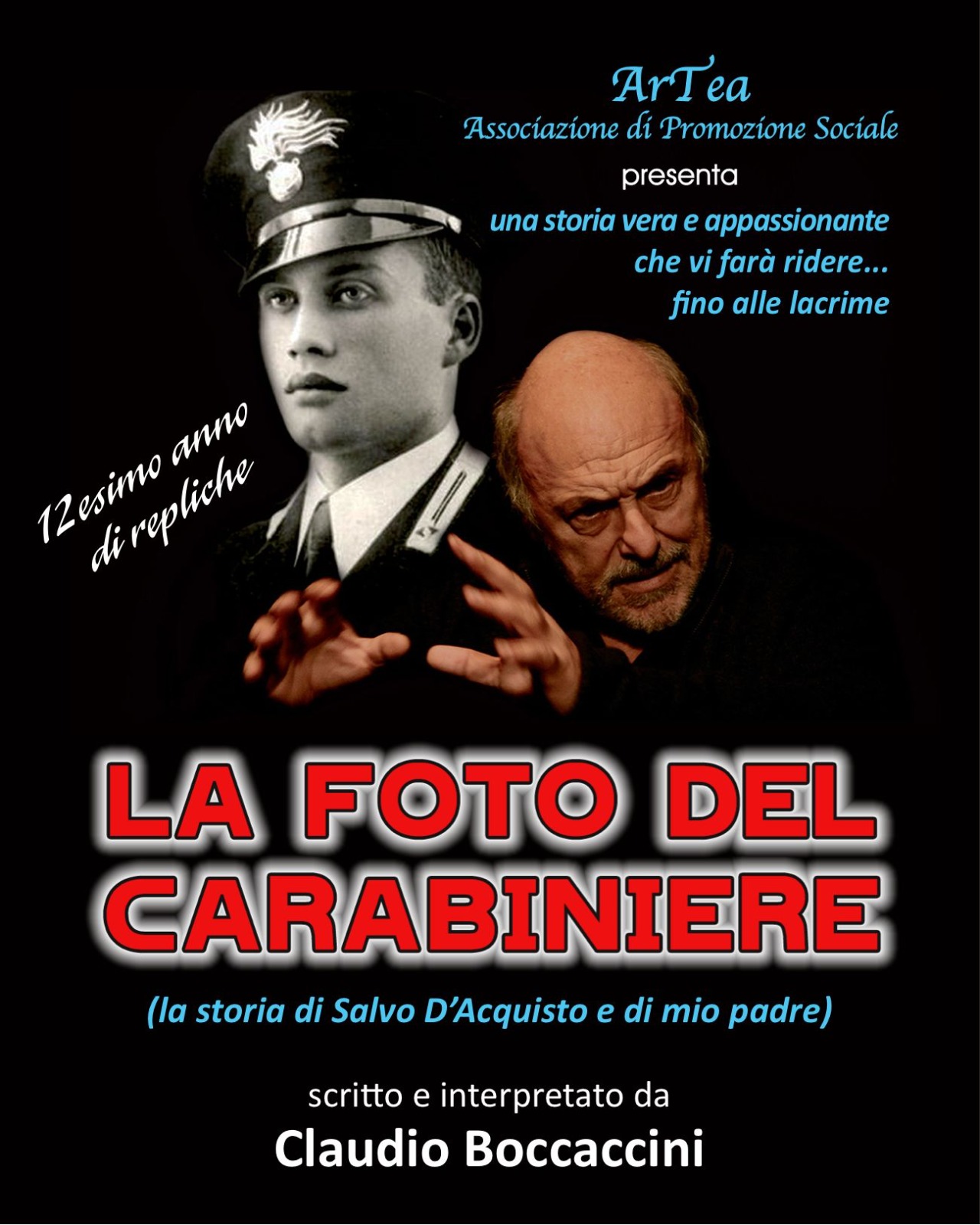 Si comincia domenica 8 settembre alle ore 21.15, quando, in collaborazione con l’associazione di promozione sociale Artea, andrà in scena “La foto del carabiniere” di e con Claudio Boccaccini. Una storia vera e appassionante (ingresso 10 euro).