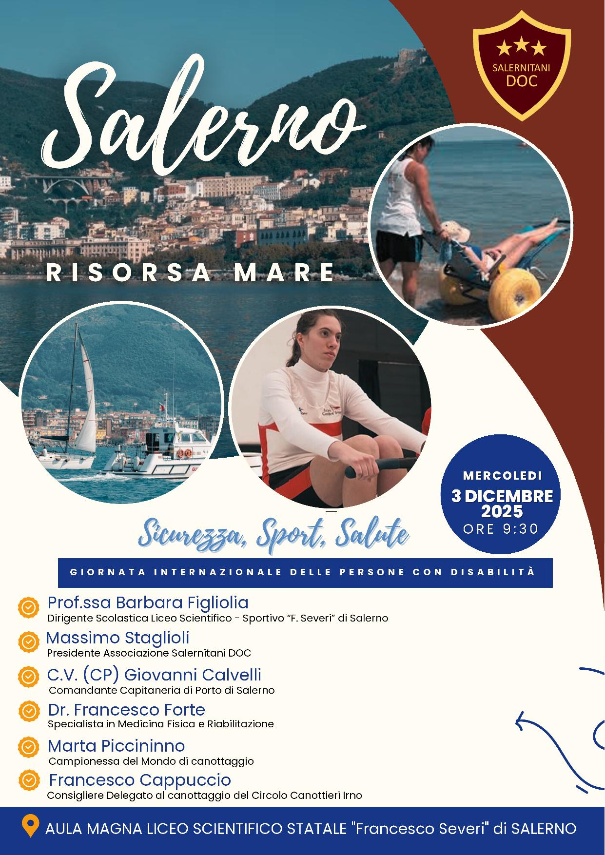 Il convegno è realizzato grazie alla collaborazione tra l’Associazione Salernitani DOC, il Liceo Scientifico “F. Severi” e la Capitaneria di Porto di Salerno.