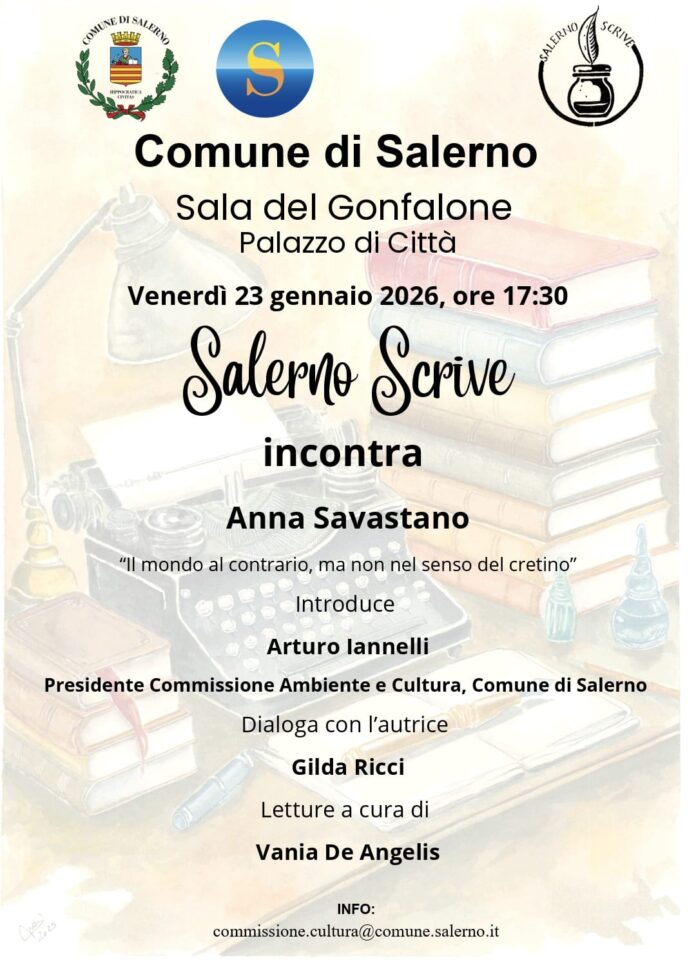 Venerdì 23  gennaio ore 17,30 presso il Salone del Gonfalone del Comune di Salerno per Salerno scrive.
