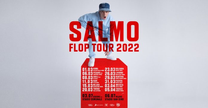 Proprio oggi, infatti, SALMO annuncia oggi il “FLOP TOUR”, la tournée organizzata e prodotta da Vivo Concerti e prevista per i mesi di marzo e aprile 2022, che lo vedrà portare sui palchi dei principali palazzetti italiani tutta la carica esplosiva dell’omonimo album, uscito venerdì 1 ottobre.