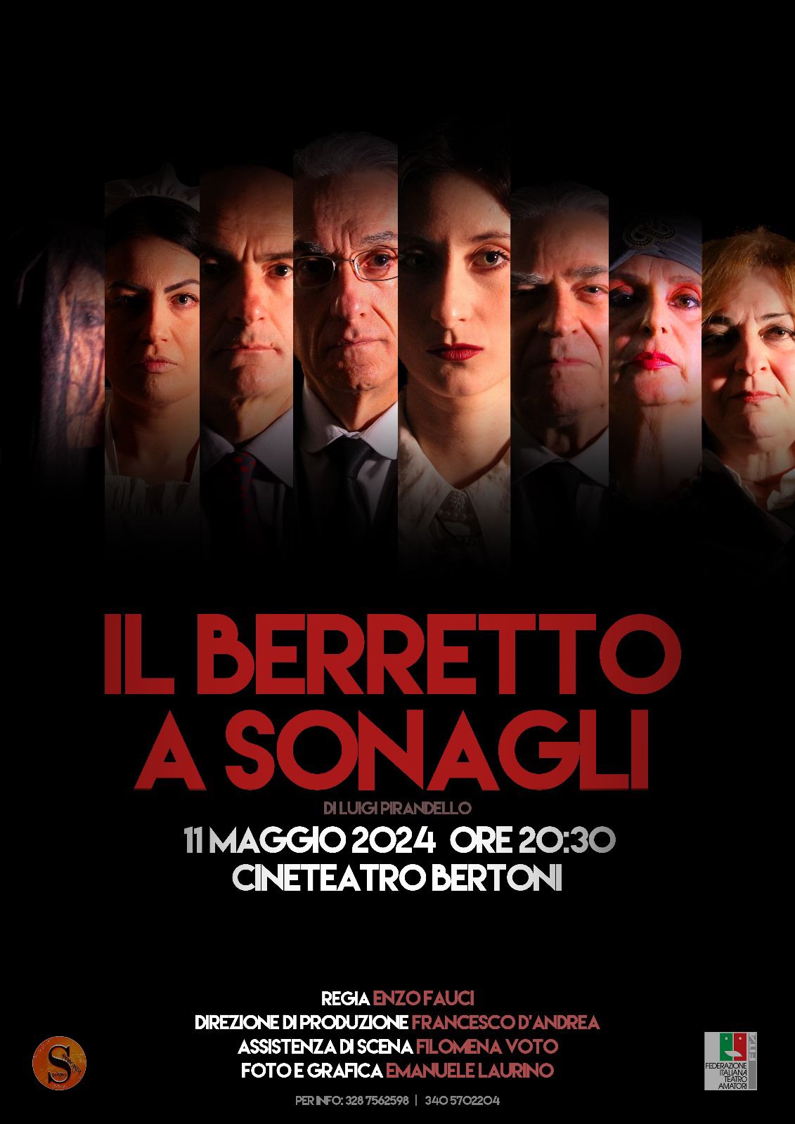 Sul palcoscenico del teatro Bertoni prenderà vita un cast affiatato, guidato da Enzo Fauci, che veste i panni del protagonista Ciampa e firma la regia di questo lavoro teatrale. Accanto a lui, Giusy Murrone interpreta Beatrice Fiorica, Donato Ciociola è Federico, Nino Chillemi il Commissario Spanò, Rita D’Anna sarà Assunta, Marianna Pesce che interpreta Nannina e Stefania Melella sarà la Saracena.