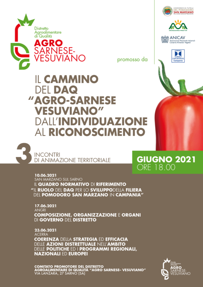 L’incontro, a cui hanno preso parte sindaco di San Marzano, Carmela Zuottolo, il presidente del Consorzio di Tutela del Pomodoro San Marzano dell’Agro Sarnese-Nocerino DOP, Giampiero Manfuso, Vincenzo di Massa, presidente della organizzazione di Produttori A.O.A di Scafati e il presidente di Italia Ortofrutta, Gennaro Velardo, nella sua veste di direttore della AOA, fa parte di una serie di appuntamenti di animazione territoriale organizzati dal Comitato Promotore del Distretto Agroalimentare di Qualità (DAQ) “Agro Sarnese-Vesuviano” che si concluderanno ad Acerra il prossimo 24 giugno.