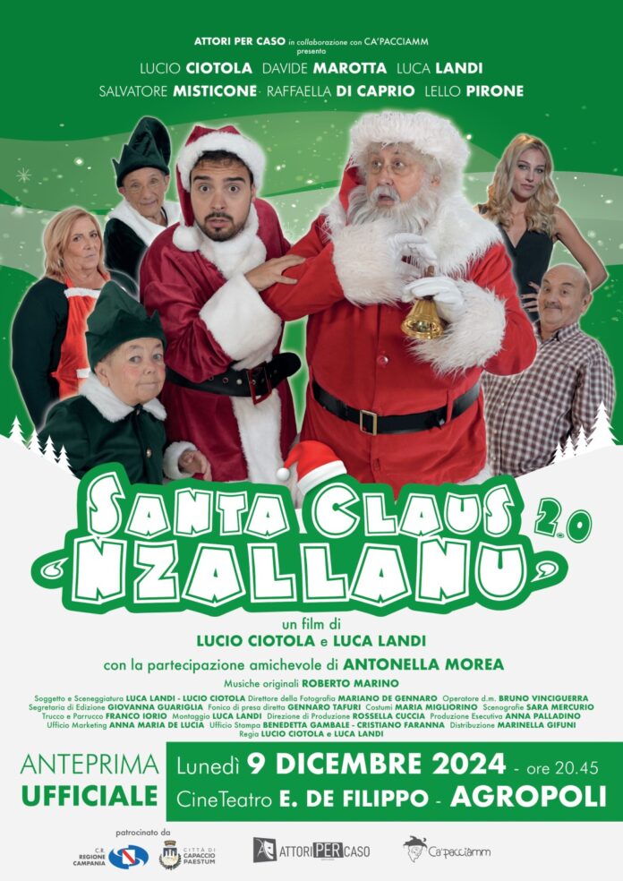 Il Natale quest’anno ha un cuore tutto campano. Santa Claus ‘Nzallanù 2.0, il nuovo film prodotto dall’associazione Attori per Caso in collaborazione con Ca’pàcciam, patrocinato dalla Regione Campania e dal Comune di Capaccio Paestum, debutta al CineTeatro Eduardo De Filippo di Agropoli lunedì 9 dicembre alle ore 20:30 con una prima ufficiale che promette risate, emozioni e un tocco di magia.