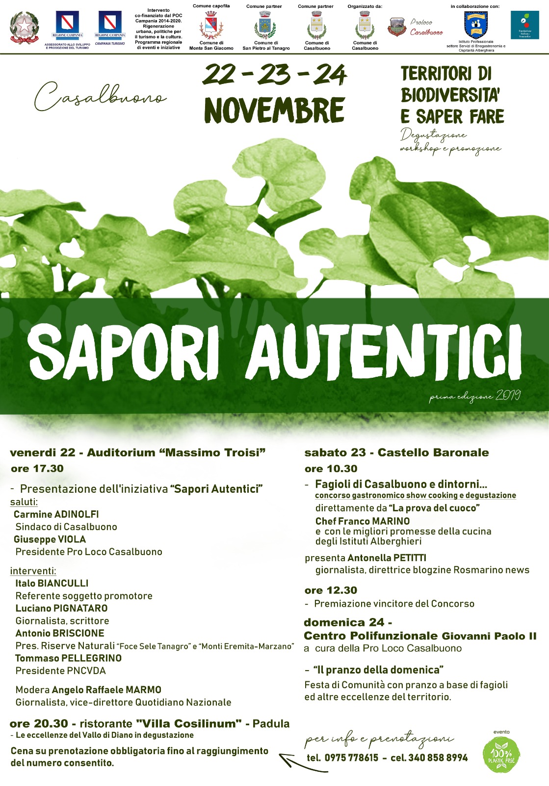 Prenotazione obbligatoria fino al raggiungimento del numero consentito (0975.778615 – 340.8588994)