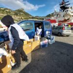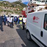 Sul molo dove è attraccata la nave, i nostri operatori hanno predisposto una postazione con un punto di primo ristoro con tè caldo, acqua e brioche; pronti anche capi di abbigliamento, pantaloni, felpe, maglie, scarpe e ciabatte per chi dovesse avere bisogno.