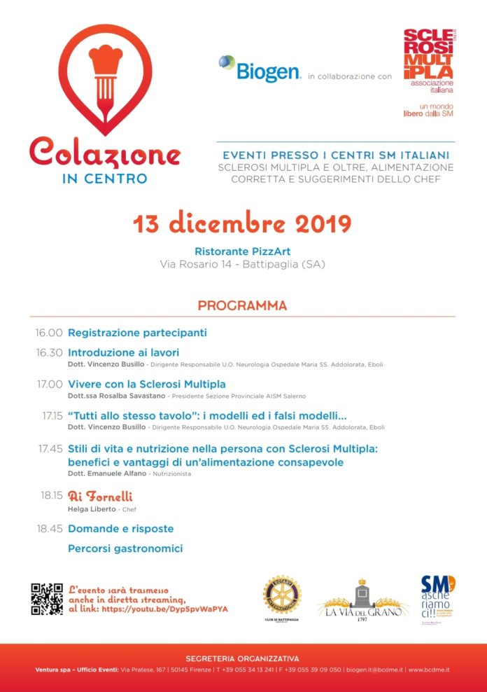 Addolorata di Eboli e del Centro Aziendale Sclerosi Multipla della ASL Salerno, e il dott. Emanuele Alfano, nutrizionista, relazioneranno su “Stili di vita e nutrizione nella persona con sclerosi multipla: benefici e vantaggi di un’alimentazione consapevole”.