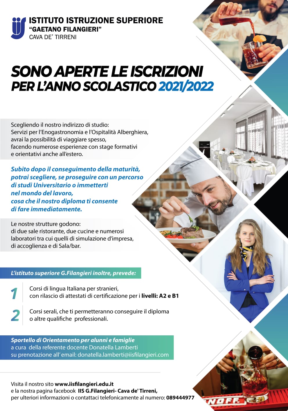 Visita il nostro sito www.iisfilangieri.edu.it e la nostra pagina facebook IIS G.Filangieri- Cava de’ Tirreni, per ulteriori informazioni o contattaci telefonicamente al numero: 089444977