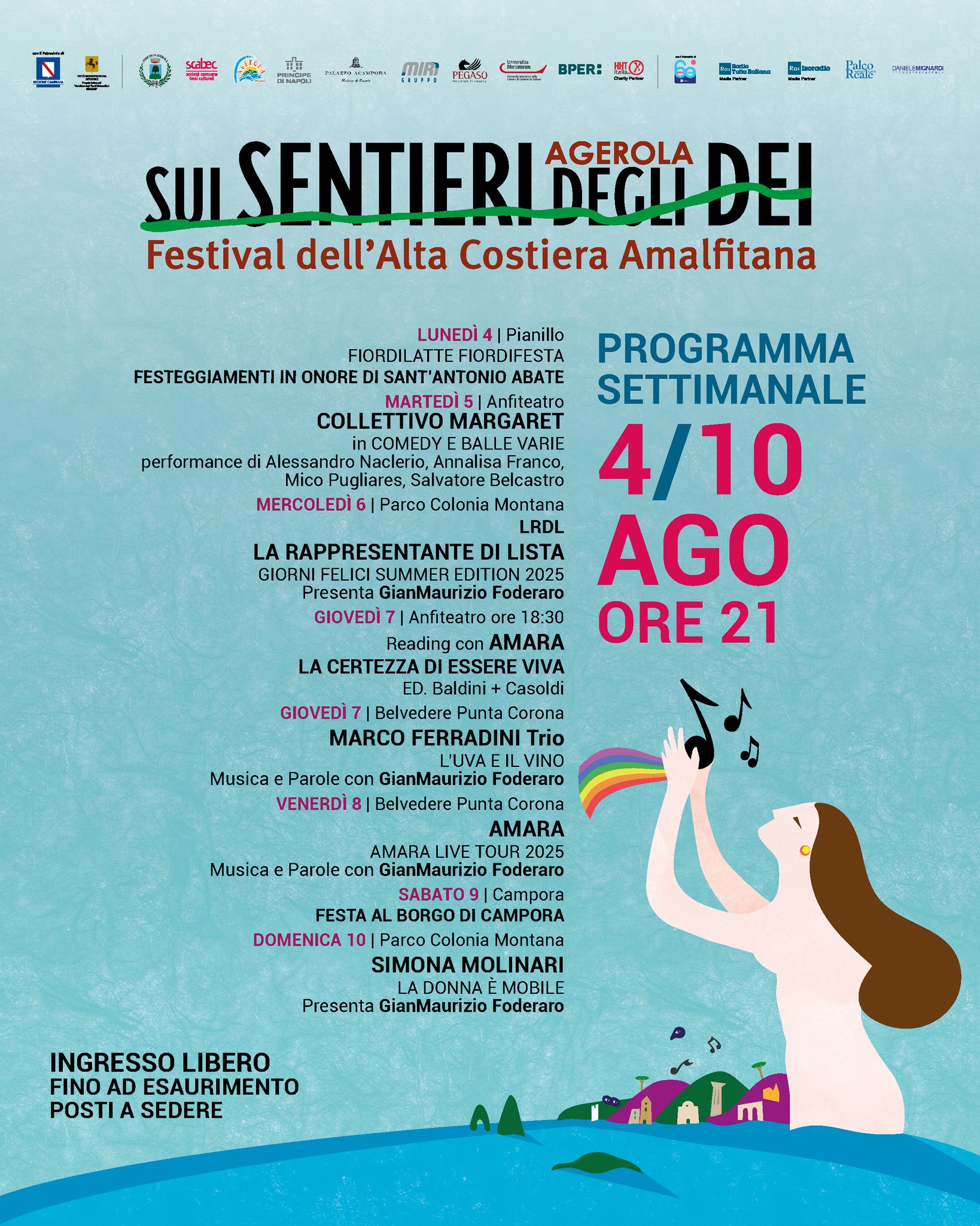 Il Festival “Sui Sentieri degli Dei” si conferma così crocevia di linguaggi, identità e sensibilità, nel segno della bellezza e della cultura ad alta quota.