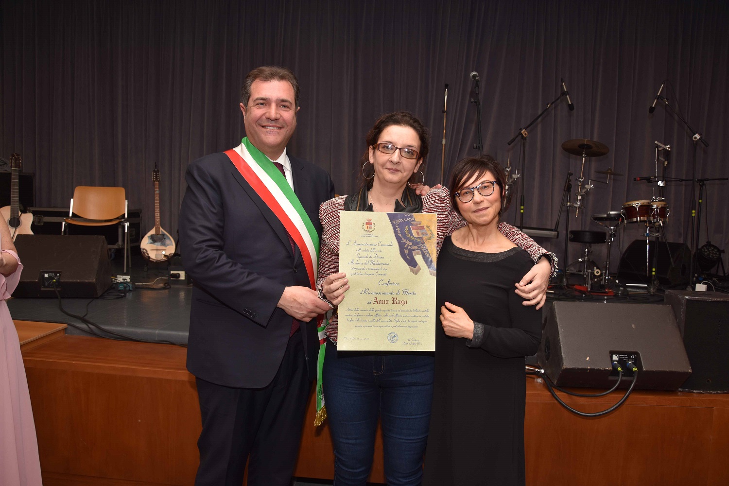Emozionata ha, infine, salutato e ringraziato le donne che hanno ricevuto il riconoscimento civico da parte dell’Amministrazione “perché, con la loro infaticabile opera quotidiana, sostengono la crescita della Comunità e danno lustro alla Città”, e, in tema di pari opportunità, ha evidenziato la necessità di rafforzare la sinergia tra istituzioni, enti, associazioni e cittadini “perché il Paese Italia si dimostra ancora incapace di garantire soluzioni efficaci e durature”.