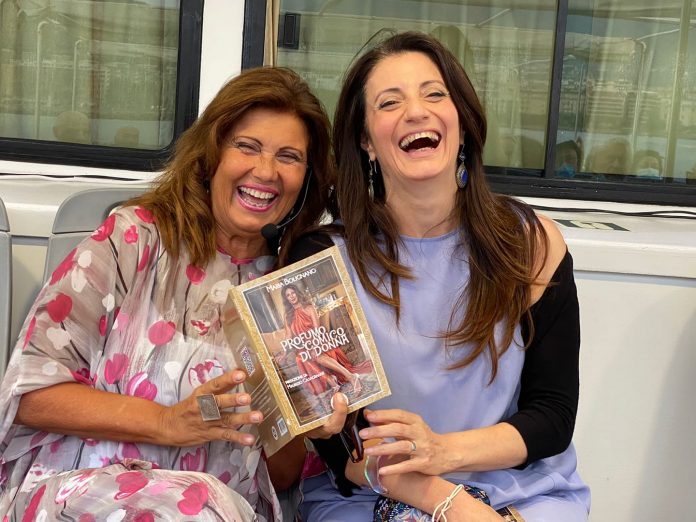 Ha concluso il primo appuntamento della kermesse l’attrice comica napoletana Maria Bolignano con “Profumo comico di donna” (Edizioni MEA). Raffinata e attenta, sottile e mai banale, la Bolignano ha emozionato e divertito i tanti presenti con un vero e proprio show a bordo dell’Acquarius insieme all’all’attrice Rosaria D’Urso. “La Bolegna”, come si fa chiamare l’attrice sui suoi canali social, si è raccontata e reinventata, rompendo lo stereotipo della donna “rosa” tutta tacchi a spillo e rossetto. Come sempre sopra le righe, la Bolignano ha dato sfoggio della vera femminilità, quella che, come anticipa la copertina del libro, si mostra, fiera, vulcanica e vanitosa, senza mai rinunciare all’arguzia e alla battuta della vera “femmina”, quella capace di parlare anche solo con un occhiolino.