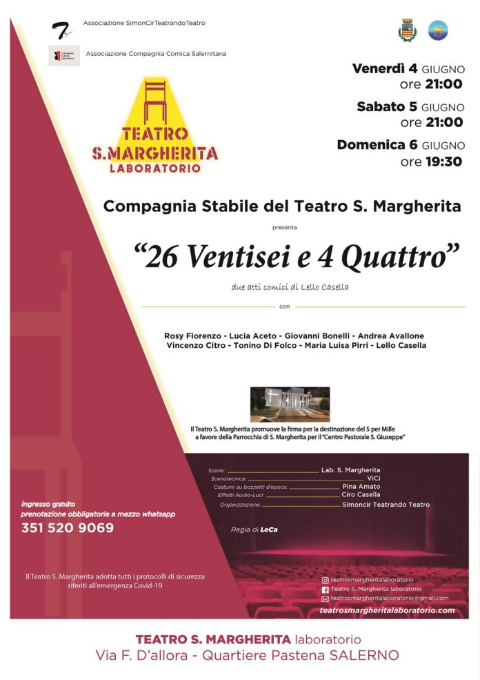 “La velocità con la quale la disponibilità dei posti si sia esaurita dimostra non solo quanto forte è il desiderio di normalità, ma anche il bisogno di tornare a divertirsi e a sognare insieme” dice Lello Casella che dello spettacolo “26 Ventisei e 4 Quattro” è autore, regista e attore insieme a Rosy Fiorenzo, Lucia Aceto, Giovanni Bonelli, Andrea Avallone, Vincenzo Citro, Tonino Di Folco, Maria Luisa Pirri.
