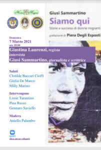 “Le donne hanno sempre dovuto lottare doppiamente. Hanno sempre dovuto portare due pesi, quello privato e quello sociale. Le donne sono la colonna vertebrale della società”. Con questo pensiero di Rita Levi-Montalcini inizia il libro della giornalista e scrittrice romana Giusi Sammartino: “ Siamo qui. – Storie e successi di donne migranti”, edito da Bordeaux, che racconta storie vere di donne che arrivate in Italia da ogni parte del mondo hanno realizzato i loro sogni. Il libro è stato presentato nel corso dell’incontro organizzato, su piattaforma, da quattro associazioni salernitane: “Parco Storico Sichelgaita” e “Hortus Magnus”, presiedute dalla professoressa Clotilde Baccari Cioffi, “Soroptimist International di Salerno”, presieduto dalla professoressa Giulia De Marco, e dal “Club Inner Wheel Salerno Carf”, presieduto dalla dottoressa Milly Marino.