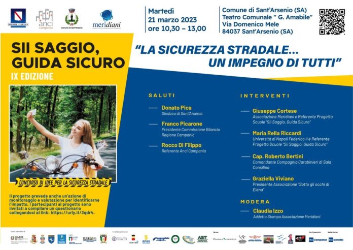 Martedì 21 marzo alle ore 10:30, sarà il Teatro Comunale “G. Amabile” di Sant’Arsenio (SA) ad ospitare la cinquantunesima tappa del roadshow #siisaggioguidasicuro dell’anno scolastico e accademico 2022/2023.