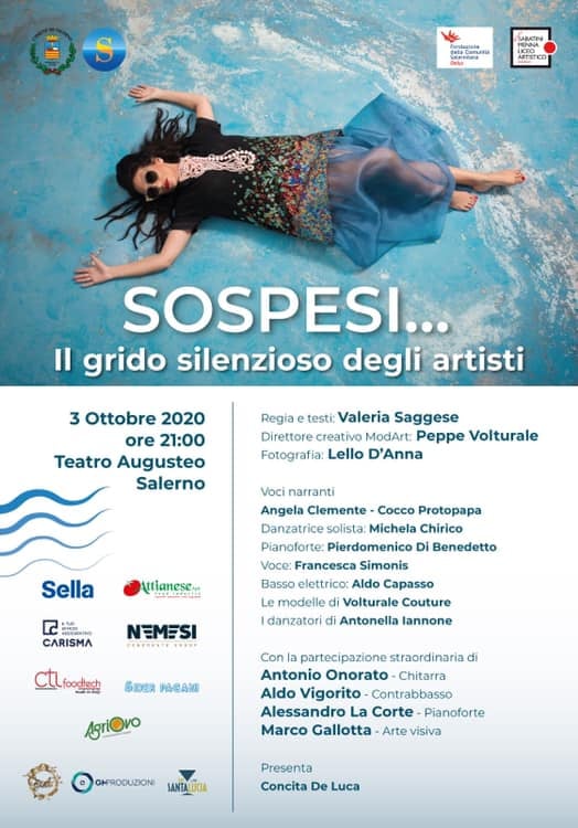 Dietro ogni artista c’è un operaio che lavora duramente e dopo mesi di lockdown, gli “operai e gli artigiani dell’arte” si ritrovano ancora di più “sospesi” a pagare lo scotto di un Paese che non supporta degnamente queste categorie. Molti di loro hanno una posizione lavorativa precaria e hanno come mezzo di sussistenza solo gli introiti ricavati dagli spettacoli dal vivo. “Sospesi”, partendo dagli anni ’60 e dalla figura di Mary Quant, affronta anche il tema delle discriminazioni sociali, del ruolo della donna dalla nascita della minigonna a oggi, ricordando la figura iconica di Florinda Bolkan, colei che negli anni ‘70 cancellò l’immagine della donna bambola, andando oltre ogni pregiudizio di genere.