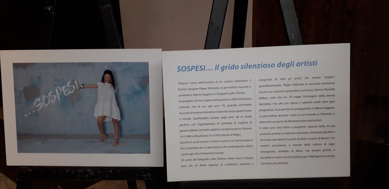 “Sospesi” spettacolo imponente, originale con venticinque artisti al Teatro Augusteo di Salerno si è tenuto il 3 ottobre, per rilanciare il ruolo della musica, della danza, della moda e dell’arte e delle varie forme d’arte, per rivendicare con forza le esigenze di uno dei settori maggiormente penalizzati dal Covid-19.