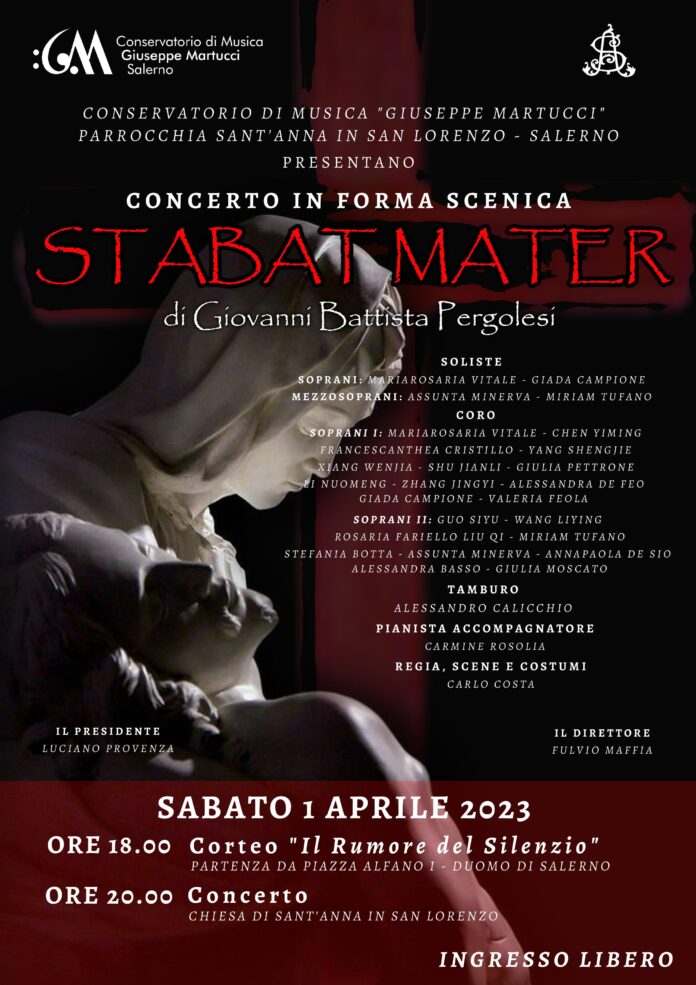 Alla vigilia dell’inizio dei riti della Passione, il Conservatorio Statale di Musica “Giuseppe Martucci” offre domani, sabato 1 aprile, un concerto in forma scenica con corteo in costume ed esecuzione dello Stabat Mater di Giovanni Battista Pergolesi.