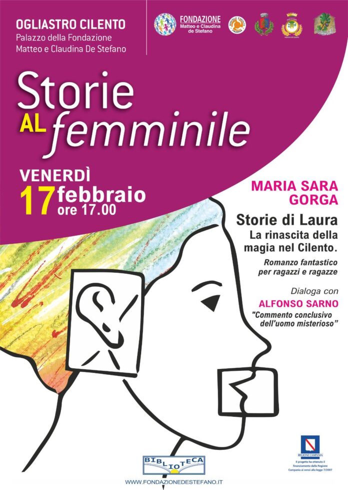 In loro aiuto, la magia. Si annuncia così il prossimo appuntamento con Storie al Femminile, dalle 17 di venerdì 17 febbraio, con Maria Sara Gorga, autrice del romanzo fantastico per ragazze e ragazzi Storia di Laura. La rinascita della magia nel Cilento alla Fondazione Matteo e Claudina de Stefano di Ogliastro Cilento. Serata tra parole e note, ad accompagnarla la musica di Filippo Massimi.