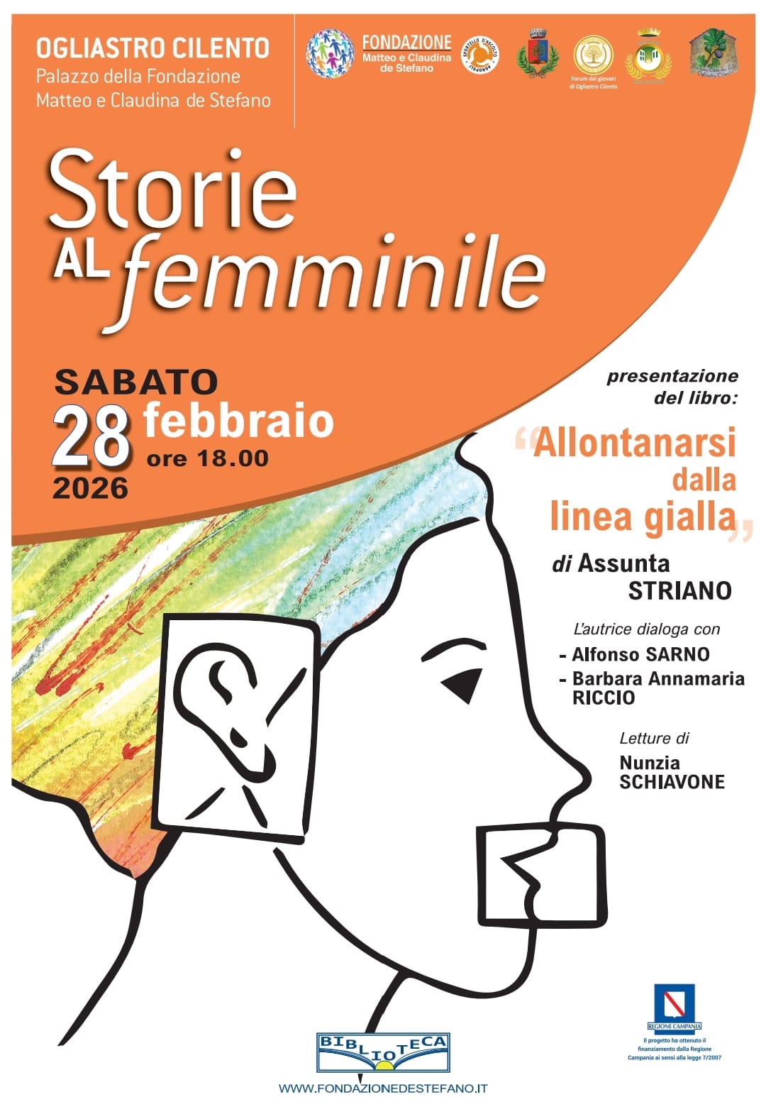 Prosegue la consolidata rassegna letteraria “Storie al Femminile”, appuntamento ormai atteso nel panorama culturale del Cilento. Il secondo incontro dell’anno si terrà sabato 28 febbraio, alle 18, nel salotto della Fondazione Matteo e Claudina de Stefano di Ogliastro.