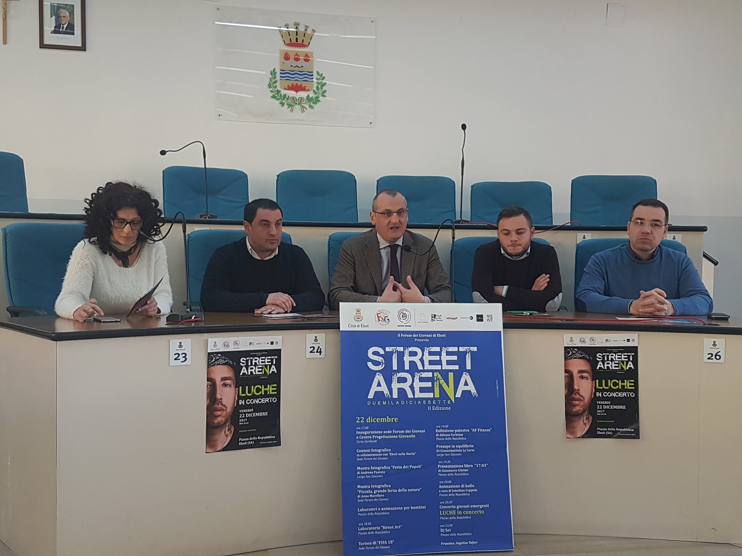 L’appuntamento Street Arena, la festa dei giovani, ma alla quale sono invitati tutti, alza il sipario nel centro di Eboli, con eventi programmati tra la sede del Forum, Via delle Arti, Largo San Giacomo e Piazza della Repubblica. Un’intera giornata voluta dai giovani del Forum, in stretta collaborazione con l’Amministrazione comunale di Eboli, che si svilupperà attraverso mostre, contest, laboratori, gastronomia, incontri e spettacolo. Venerdì 22 dicembre si parte alle 17, poi un lungo elenco di eventi, fino al momento clou, il concerto del rapper LUCHE, in largo San Giacomo, alle 21,30, con le manifestazioni che saranno presentate da Angelica Tafuri.