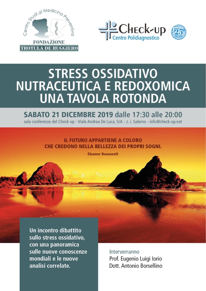 Sabato 21 dicembre, alle ore 17 e 30 una tavola rotonda su ‘Stress ossidativo, Nutraceutica e Redoxomica’. L’appuntamento è presso la sala conferenze del Check-up in Viale Andrea De Luca (zona industriale) in Salerno.