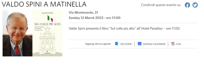 Valdo Spini presenta il libro “Sul colle più alto” all’ Hotel Paradiso – ore 17.00.