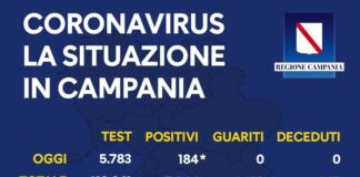 Coronavirus, aggiornamento 31 agosto, 184 nuovi casi nelle ultime 24 ore.