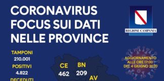 Coronavirus, aggiornamento, in Campania 4.822 contagiati e 425 decessi.