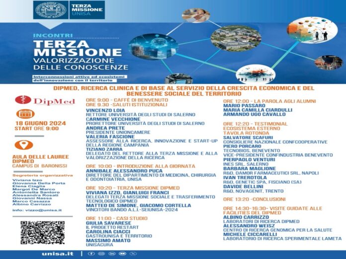 Ecco perché acquistano particolare importanza gli incontri “ Terza Missione Valorizzazione delle Conoscenze” che si svilupperanno il prossimo 18 giugno a partire dalle 9. 30 al Dipartimento di Medicina del Campus di Baronissi.
