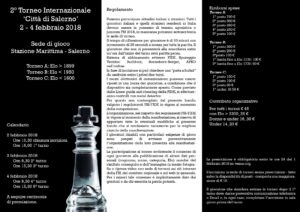 Si terrà da venerdì 2 a domenica 4 febbraio, presso la Stazione Marittima di Salerno, la seconda edizione del Torneo Internazionale di Scacchi “Città di Salerno”.