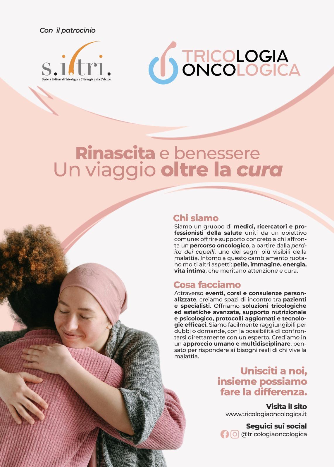L’Associazione “Angela Serra” per la ricerca sul cancro e la SITRI (Società Italiana di Tricologia) sono orgogliose di annunciare un iniziativa dedicata al benessere del paziente oncologico oltre la terapia.