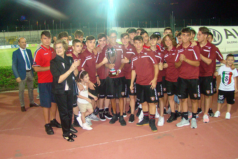 Nei Giovanissimi successo della Salernitana di mister Ernesto De Santis, che al termine di un match entusiasmante ha sconfitto per 3-2 il Benevento del tecnico Giuseppe Fusaro. Decisiva la rete segnata per i granata da Francesco Citarella, che si è anche aggiudicato il titolo di miglior marcatore della categoria con 3 reti. La Salernitana ha così “incassato” il Trofeo Gino Avella, consegnato da Rosanna Avella, moglie dell’indimenticabile giornalista cavese al quale è ogni anno dedicato il “Città di Cava de’ Tirreni”.