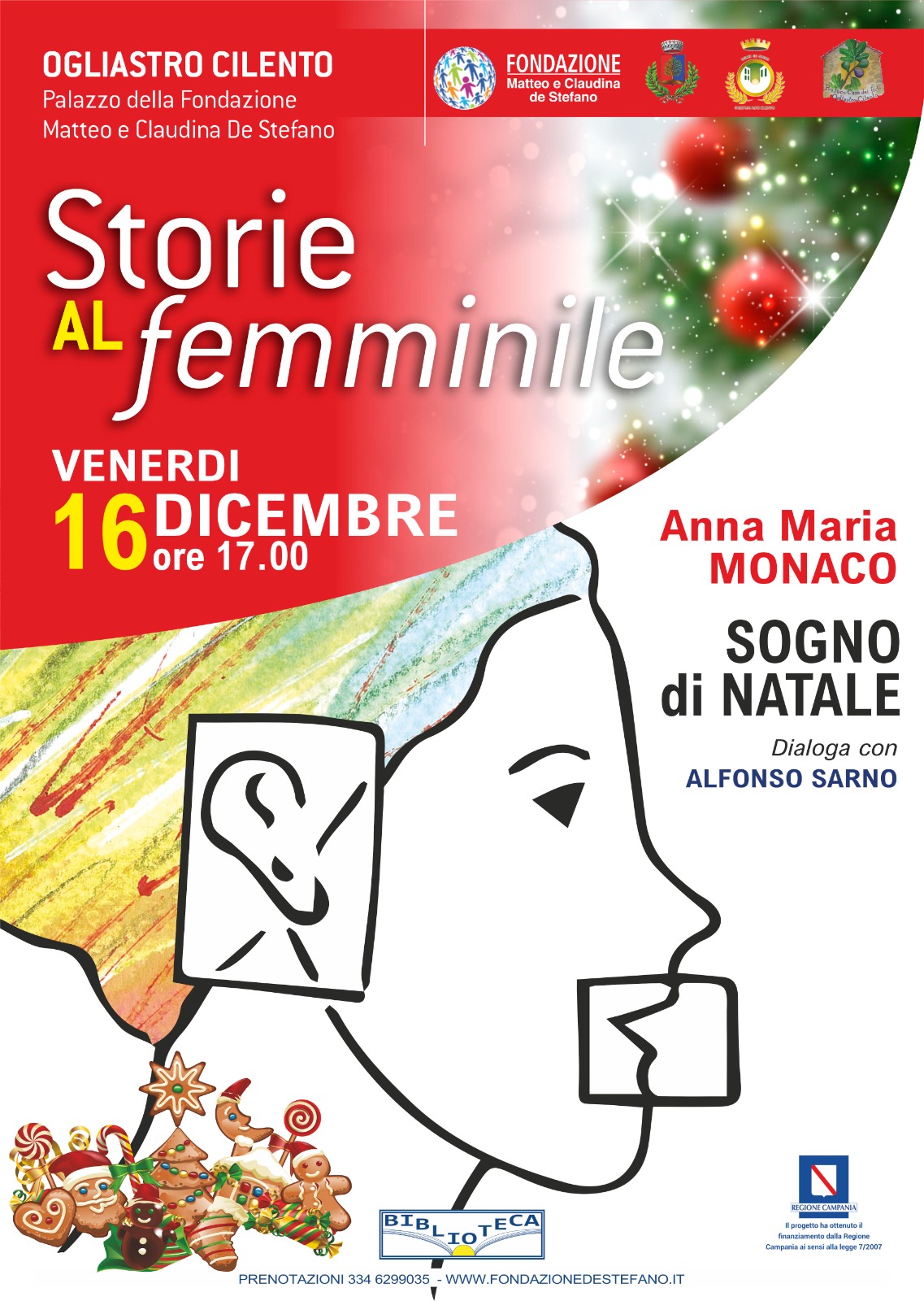 Si respira aria di festa al salotto della Fondazione Matteo e Claudina de Stefano di Ogliastro Cilento con il prossimo incontro di Storie al Femminile, in programma venerdì 16 dicembre, alle 17. L’ultimo appuntamento dell’anno, in compagnia di Anna Maria Monaco e il suo libro Sogno di Natale (Adda Editore) sarà anche l’occasione per anticipare la ripartenza di una nuova stagione che ci accompagnerà nei mesi a venire, portandoci per mano alla riscoperta della creatività in rosa dalla penna di scrittrici di generazioni e generi letterari diversi che presentano i propri romanzi e saggi, molte volte ispirati al territorio. Una stellina nera in un gruppo di luminosissime superlux, in groppa ad una superba cometa, in viaggio verso Betlemme la notte di Natale. Bisogna cacciarla via all’istante, altrimenti la sciagura si abbatterà su tutti. La stellina nera precipita e atterra sul ramo di un albero, ai cui piedi è accovacciato un gruppetto di bambini-ombra, nati, dicono loro, sotto una cattiva stella. In realtà, rifiuti dell’Umanità. Pregiudizio e rifiuto: due parole da cui non può nascere nulla di buono. E invece, no. La stellina nera non si scoraggia e trascina i suoi amici, rassegnati e scettici, da Gesù Bambino. In fondo è la notte di Natale e un miracolo è possibile. Ad ognuno di noi tocca fare la sua parte, bastano poche “parole miracolose” da riscoprire e in cui credere. Quali? Amicizia, accoglienza, solidarietà, sogni condivisi. I risultati potrebbero essere sorprendenti. Illustrazioni di Florisa Sciannamea. Insegnante nella scuola primaria per molti anni, Anna Maria Monaco da sempre impegnata nel campo della cultura, oltre che nella scrittura, è un’attiva sostenitrice della valorizzazione turistica e culturale della sua Buccino. In conversazione con l’autrice ci sarà il giornalista Alfonso Sarno. Ingresso libero.