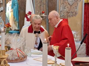 Tutti i nominati, che daranno il loro contributo di valorizzazione dei valori religiosi, spirituali e storici dell’associazione, hanno portato dei doni simbolici sull’altare che sono stati benedetti dal Vescovo Emerito, Monsignor Gerardo Pierro, che ha celebrato la messa coadiuvato dall’avvocato Luigi Noschese, in qualità di accolito. Monsignor Pierro ha benedetto i nuovi soci ed esortato tutti a non aver paura dei problemi e delle difficoltà della vita. La cerimonia è stata impreziosita dalla musica vibrante dell’organo, suonato dal Maestro Angelo De Angelis, e dalla stupenda voce del soprano Adele Spagnuolo, anch’ella socia dell’Ordine, che ha interpretato alcuni brani di Monsignor Marco Frisina.