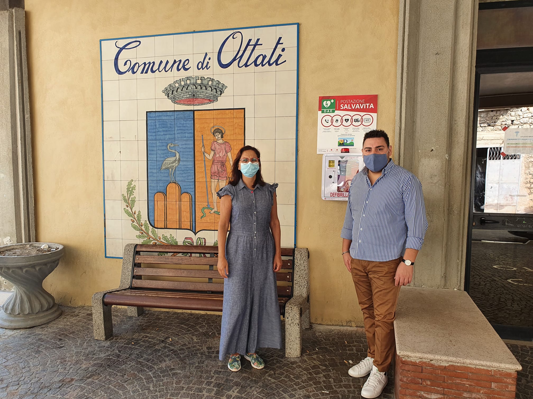 L’installazione della postazione salvavita è avvenuta mercoledì 23 settembre 2020, presso la sede municipale, in via XXI Maggio, alla presenza del Sindaco Elio Guadagno e della Presidente dell’Associazione La Panchina Emilia Verderame.