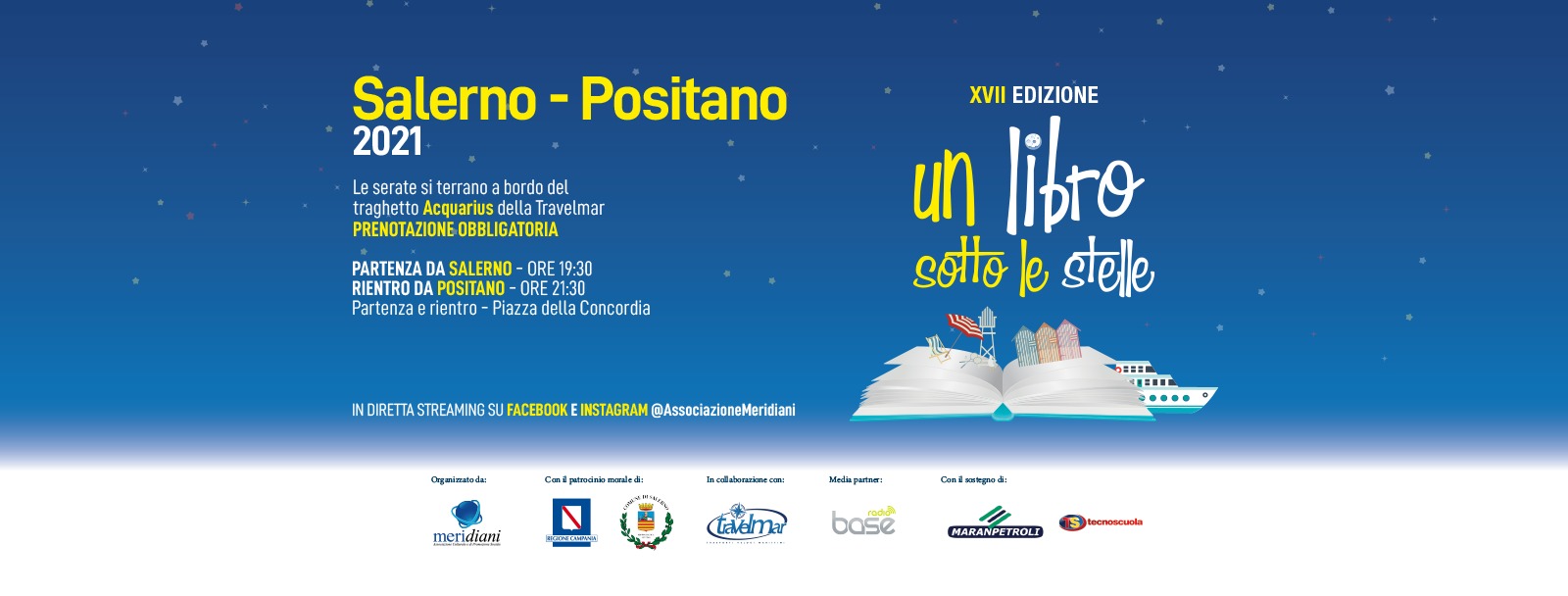 Con questo spirito l’Associazione Meridiani promuove con il patrocinio morale della Regione Campania e del Comune di Salerno la XVII edizione della rassegna letteraria “Un libro sotto le stelle” in programma dal 15 al 17 e dal al 22 al 24 luglio nella città di Salerno.
