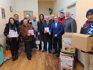 Panettoni , pandori, roccocò, mostaccioli, torroni, barrette e tavolette di cioccolato, biscottini alle mandorle e tanti altri dolciumi, comprati grazie ai fondi raccolti presso le pasticcerie salernitane che hanno aderito al progetto rotariano: “Un Panettone Sospeso”, sono stati consegnati nel pomeriggio di oggi nella sede della “ Caritas Diocesana” e nella “Chiesa del “Gesù Redentore”, nel Quartiere Europa, a Don Antonio Romano, Vicario Episcopale per la Carità della Diocesi di Salerno, e al parroco Don Ciro Torre, che hanno accolto con grande entusiasmo i presidenti e i soci dei sodalizi della famiglia rotariana che hanno sostenuto l’iniziativa solidale dedicata alle persone in difficoltà della nostra città, ispirata al caffè sospeso napoletano, proposta dal presidente del “Rotary Club Salerno Duomo”, il dottor Gaetano Cuoco :” Un progetto al quale hanno immediatamente aderito gli altri Club rotariani salernitani: ” Rotary Salerno” (presidente Francesco Caggiano), “Rotary Salerno Est” ( Ermanno Lambiase), “Rotary Salerno Picentia” (Lucio Bojano), “Salerno Nord dei Due Principati” (Vittorio Villari), “Rotary Paestum Centenario” (Carrie Elise Rodella); i Club Rotaract salernitani: “Rotaract Salerno Duomo” ( presidente Federica Romano), ” Rotaract Salerno” ( Roberta Palumbo), “Rotaract Paestum” (Denise Malandrino), “Rotaract Campus Salerno Nord dei Due Principati”( Vincenzo Guglielmelli),“Rotaract Salerno Est” (Giovanna Morea); i Club Interact : “Salerno” (presidente Clemente Ingenito), “Salerno Est” (Francesco Giordano), “Salerno Nord dei Due Principati” (Christian Ceglia) e il “Club Inner Wheel Salerno CARF”, presieduto da Marcella Anzolin. C’è stata una grande risposta da parte di tutti i soci dei vari Club salernitani e non solo, che hanno donato con gioia perché donare arricchisce anche chi dona. Il Rotary promuove la solidarietà e rende le persone più umane”. Don Antonio Romano ha raccontato che sono aumentati i poveri che accedono alle strutture della “Caritas Diocesana”, diretta da Don Flavio Manzo:” Abbiamo circa novanta posti letto per i meno fortunati. Due dormitori uno in Via Bastioni, di 34 posti, inclusi dieci posti per le donne, e uno in Piazza San Francesco di 27 posti. Abbiamo due Case Famiglia: una in Via Angrisani, per donne e bambini, e una a Giovi. Abbiamo anche un dormitorio presso i Padri Saveriani e, nel periodo invernale, abbiamo anche un altro dormitorio emergenziale presso la chiesa di San Demetrio che è gestito dalla “Fondazione Caritas” di cui sono presidente. Tanti i frequentatori della “Mensa San Francesco” di Via D’Avossa, presso i Salesiani, dove serviamo circa ottanta pasti al giorno, a tavola, ad ora di pranzo, e circa cinquanta pranzi da asporto. Presso la Mensa prepariamo anche, per cena, circa settanta pasti per i due dormitori. In Via Bastioni abbiamo anche un centro diurno”. Don Antonio Romano ha raccontato che i poveri non sono solo extracomunitari:” Più del 50% sono italiani. Persone con un’età media tra i cinquanta e i sessant’anni. Non solo clochard, che hanno deciso di vivere per strada, ma anche persone con dipendenze varie, divorziati, gente che ha perso il posto di lavoro o ha avuto problemi in famiglia. Tante le persone che si rivolgono a noi perché hanno difficoltà anche a pagare le bollette o a comprare medicinali”. Don Ciro Torre parroco della Chiesa del “Gesù Redentore”, nel Quartiere Europa”, alla quale afferiscono più di quindicimila fedeli del quartiere, molti dei quali vivono nella marginalità e hanno bisogno di aiuto oltre che della cura pastorale del parroco che insieme ai volontari del quartiere, cura anche la mensa di solidarietà di “Casa Nazareth”:” Sono aumentate le persone che ogni giorno vengono a pranzare. Prima del Covid venivano da noi una trentina di persone, prevalentemente straniere, oggi sono circa ottanta e sono in maggioranza della nostra città”. Aniello Palumbo