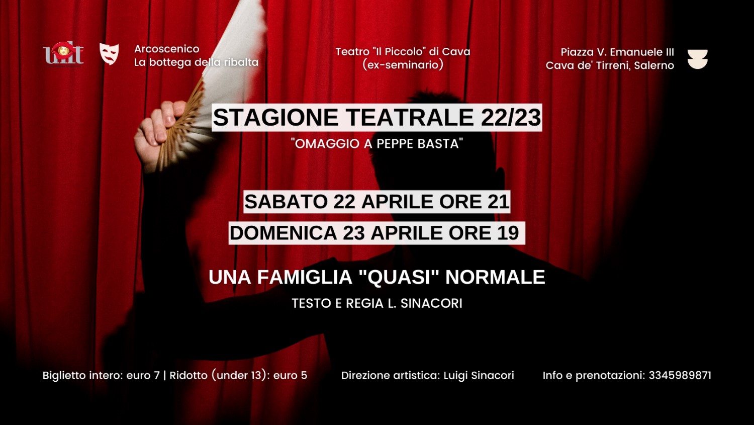 Sabato 22 dalle 21 e domenica 23 aprile 2022 dalle 19 torna la Stagione Teatrale del Teatro Il Piccolo di Cava, sito in P.zza V. Emanuele III a Cava de’ Tirreni (adiacente al Duomo cittadino), organizzata dall’ Associazione Arcoscenico.