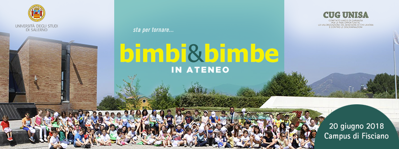 Dopo il successo della prima edizione, ritorna all’Università di Salerno la manifestazione “Bimbi & Bimbe in Ateneo“. Il prossimo 20 giugno il Campus aprirà le porte ai figli e alle figlie dei dipendenti della comunità universitaria per aderire a “Bimbi & Bimbe in ufficio con mamma e papà”, l’iniziativa promossa dal Corriere della Sera/L’Economia, in collaborazione con il Dipartimento per le Politiche della Famiglia – Presidenza Consiglio dei Ministri, e giunta alla sua 24esima edizione.