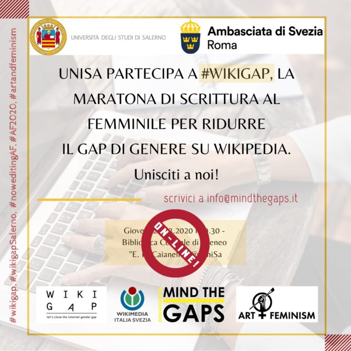 Il 26 marzo 2020, la Biblioteca dell’Università degli Studi di Salerno avrebbe dovuto ospitare “WikiGap 2020 Salerno” una maratona di scrittura al femminile per colmare il gender gap presente anche su Wikipedia.