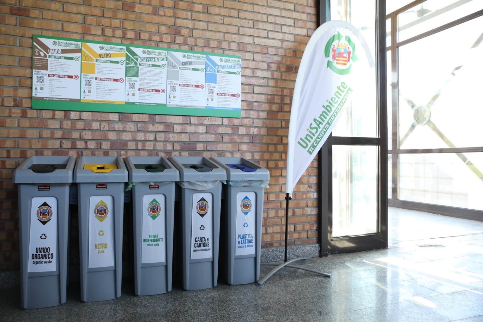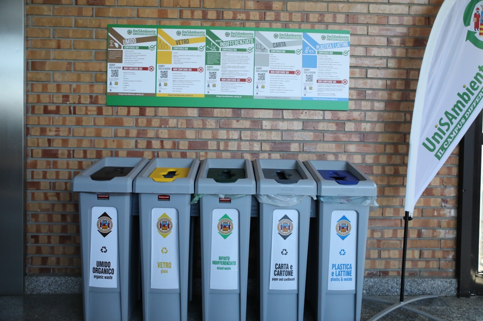 Al fine di sensibilizzare ed informare sul corretto sistema di differenziazione dei rifiuti nei campus, l’Ateneo ha predisposto un programma integrato di contenuti informativi tutti fruibili tramite “QR CODE”: la segnaletica verticale correlata alle Batterie di contenitori, con le principali indicazioni sul conferimento dei rifiuti prodotti; un sito dedicato (ambiente.unisa.it) dotato di un Glossario on-line (per la ricerca automatica della destinazione del rifiuto per il quale si ha un dubbio di conferimento); due Guide informative (una per gli studenti e una per il Personale interno) disponibili per il download dal sito.