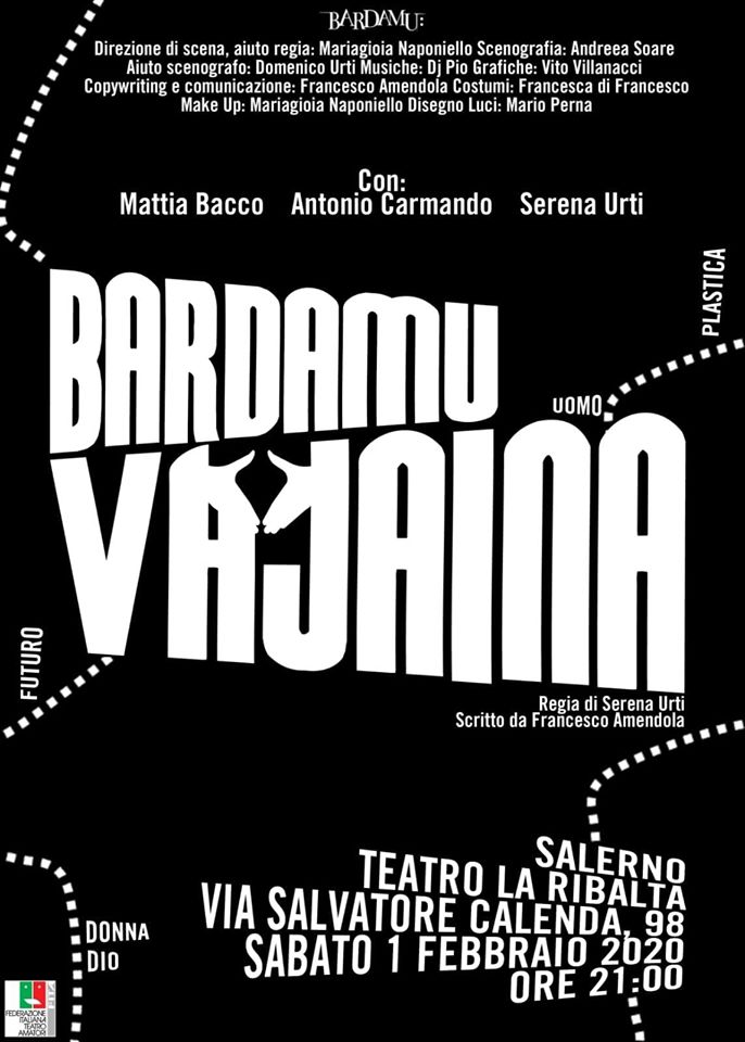 La rassegna I DIVERSI VOLTI DEL TEATRO continua a percorre la sua intensa e fitta tabella di marcia. Sabato, 1 febbraio, alle 21.00 sarà la volta di TEATRO BARDAMU con l’inedito VAJAINA, un atto unico che porta lo spettatore a riflettere fuori dalla sua comfort zone tra sessualità, religione, esistenza e non solo.