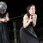 La guerra non è mai un bell’affresco. In Acarnesi Aristofane tratta il tema della pace, e lo fa attraverso le atmosfere della festa dionisiaca. Nel suo mondo si mangia e si beve, si fotte e si sfotte. Il bersaglio della sua ironia sferzante è la meschinità di chi con la guerra specula. Sullo sfondo, il coro degli Acarnesi, vecchi eroi di una guerra lontana, disprezza Diceopoli, protagonista della commedia, reo di aver stipulato, lui da solo, la pace con la nemica Sparta. Appare evidente sin da subito il conflitto vecchi/giovani. Ma i vecchi Acarnesi, scena dopo scena, si lasceranno persuadere da Diceopoli della mostruosità della guerra. Nel testo c’è un continuo rimando a un ipotetico nemico esterno che risulta sempre indefinito e invisibile. Ben presenti sono invece le dinamiche politiche proprie del mondo dell’epoca e di quello di oggi: i delatori, gli ambasciatori corrotti, i mercanti di morte, i generali ambigui, gli spioni, i traditori e tanti altri. Solo apparentemente la pace da stipulare infatti è quella con l’odiata Sparta. Quella vera sarà da costruire all’interno della propria comunità.