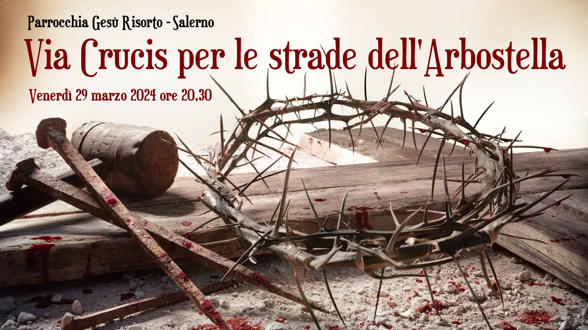 Venerdì 29 marzo p.v. alle ore 20,30 si terrà, come da tradizione, la Via Crucis per le strade dell’Arbostella.