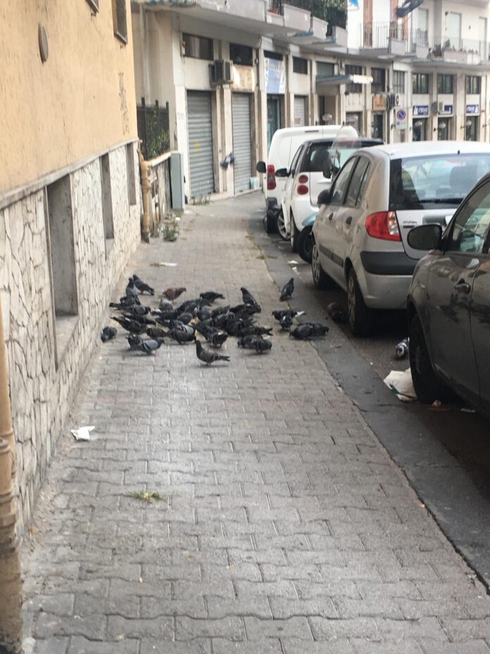L’intera strada, infatti, è diventata una colonia di piccioni dove il degrado subentra all’invivibilità tra cattivi odori e veri e propri depositi di guano ed escrementi.