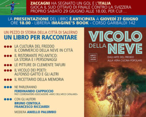 Il libro, oltre a raccontare la storia del vicolo salernitano, racconta anche del commercio della neve che si praticava a Salerno sin dai tempi della Scuola Medica Salernitana e forse anche prima. Il dottor Ricciardi si è occupato della parte storica riferita prevalentemente al ristorante, aperto nel 1870:” Il primo proprietario del “Vicolo della Neve” fu Enrico Fasano, per tutti “Ricuccio”. Nel 1913 iniziò a lavorare nel ristorante il piccolo Francesco Giuseppe Carro di otto anni, che poi diventò per tutti “Don Peppino”, al quale, nel 1945, Fasano cedette la gestione del locale”. Ricciardi nel libro racconta anche che uno degli ospiti abituali del “Vicolo” era il poeta salernitano Alfonso Gatto:” Ha dedicato al ristorante una sua poesia “Vicolo della Neve – Desinenze”. Il coautore ed editore Francesco Ricciardi nel libro ha dedicato alcune pagine alle immagini dei quadri del famoso pittore salernitano Clemente Tafuri che decoravano e in parte ancora decorano le pareti del ristorante:” Tafuri era molto amico di Don Peppino Carro, ed era un assiduo frequentatore del suo locale tanto da avere un suo tavolo riservato dove nessun altro poteva sedersi. Sulla parete della sala di destra Tafuri dipinse una grande scena “infernale” di quattro metri e mezzo per due, un olio su supporto di masonite che poi venne staccato e portato altrove. Attualmente si può ammirare solo una parte della rappresentazione dell’Inferno concepita da Tafuri: quella che rappresenta “La gioventù e la vecchiaia” dipinta nel 1960 e rimasta sulla parete di fondo, al di sopra dei caratteristici archetti sorretti da un’antica colonnina”. A raccontare, nel libro, la storia della conservazione del freddo e al commercio della neve è stato l’architetto Bruno Centola:” Scoprii la prima neviera in occasione di una ristrutturazione che curai in Via Antica Corte: da lì è nata la mia ricerca sulle neviere salernitane dove la neve era trasportata dai “nevaioli”, in ogni stagione, soprattutto di notte, dalle montagne vicine del territorio di Cava de’ Tirreni, a Monte Sant’Angelo, Monte Finestra, ma anche dalle montagne di Bracigliano, Calvanico, da quelle dei Picentini di Giffoni, dall’alta Valle del Sele, dagli Alburni e dal Cervati. La neve veniva raccolta in luoghi particolari denominate “nevère” che in spagnolo è una parola usata come sinonimo di frigorifero. Attualmente sono note: la nevèra del Vicolo Antica Corte, le due del Vicolo della Neve di cui una sotto al ristorante, e potrebbe essercene una nel palazzo di fronte al Vicolo della Neve, dove vi sono i resti di una domus romana. A Salerno la neve veniva prescritta dai medici dell’antica Scuola per molte cure: febbri, ferite, piaghe, emorragie e infezioni, ovvero per attuare la famosa cura “caldo/freddo”. L’architetto Centola ha anche spiegato che in tutte le città d’Italia c’erano delle neviere:” A Napoli, a Genova, a Torino, a Bologna, a Firenze, a Roma: anche a Cava ce n’era una, nell’attuale Via Alfonso Balzico, e anche a Scala, dove c’era la nevèra di Santa Maria dei Monti da dove proveniva la neve che serviva per preparare a Salerno i sorbetti con succo di limone”. Una parte del libro è stata riservata ad un “Ricettario della Memoria” dove sono state raccolte quindici ricette, quindici piatti da ricordare, selezionati dal noto ristoratore Matteo Ragone, proprietario e chef del “Ristorante del Golfo” che, aperto fin dal 1943, dopo il “Vicolo della Neve” è il più antico della città. “Le ricette pubblicate si riferiscono ai piatti che venivano serviti ai tavoli del ristorante quando il titolare era, dal 1975 al 2021, il ristoratore e chef, Matteo Bonavita, che ci ha aiutato a ricordarli” hanno raccontato Ricciardi e Centola che alla fine del libro hanno pubblicato i vari articoli scritti sul “Vicolo della Neve” dal 1958 ad oggi, fino al 25 maggio di quest’anno quando il ristorante ha finalmente riaperto grazie a tre giovani imprenditori: Fiorenzo Benvenuto, Gerardo Ferrari e Marco Laudato. Originale anche l’idea di pubblicare le frasi di gratitudine con le firme dei personaggi famosi come Mike Buongiorno, Sergio Bruni, Ave Ninchi, Tino Scotti, la band de “I Camaleonti” e tanti altri che negli anni hanno cenato al “Vicolo della Neve”, raccolte nel “Libro degli ospiti”. Il libro è stato realizzato grazie al contributo e il sostegno dell’Associazione Culturale “Amici dell’Arco Catalano”, coordinato dal dottor Igino De Giorgi, che sarà rappresentato dal Past Coordinatore Ferdinando Cappuccio, e con il patrocinio della “Società Salernitana di Storia Patria” presieduta dal professor Alfonso Conte.
