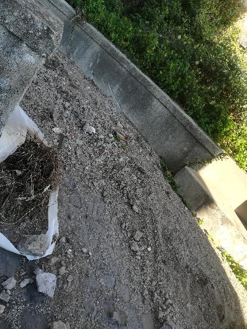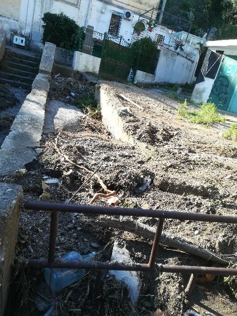 Dopo le copiose piogge degli ultimi mesi un costone lungo il primo tratto di scala è franato occludendo un canale di scolo laterale al tratto iniziale della scala ed invadendolo parzialmente con fango e detriti.