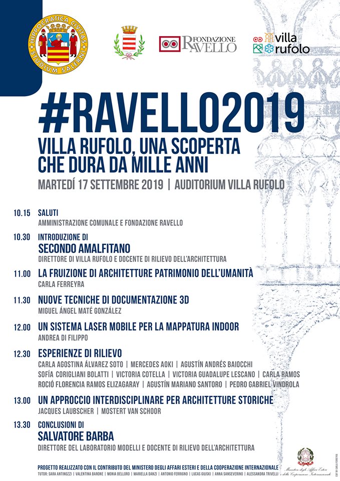 Martedì 17 settembre, con inizio alle ore 10.15 presso l’Auditorium della villa, dopo i saluti dell’Amministrazione Comunale di Ravello e della Fondazione Ravello, saranno presentate le prime risultanze del lavoro svolto durante il corso di laurea 2018-2019 della Facoltà di Architettura e Ingegneria di UNISA.